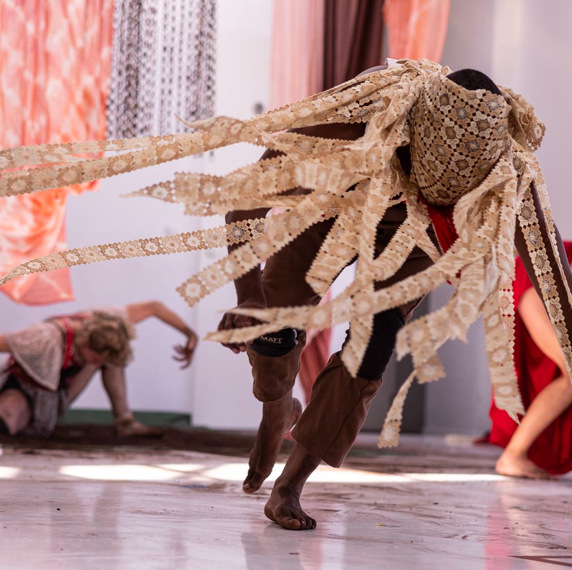 The winding paths of everyday life are not the same for everyone. Racism, sexism and other forms of discrimination exert violence in different ways on people. The Berlin-based choreographer and dancer Ricardo de Paula and the company Grupo Oito follow the traces of this violence, search for dance paths through the social labyrinth and, with the help of fantasy and spirituality, for rituals of healing. Using their own bodies and postcolonial theories as a starting point, they explore transformative potentials to reveal new ways of seeing and accessing their own power and strength. The audience follows this idea through a space where stage and audience space merge and where a fantastic world opens up with countless possibilities, visions and support.